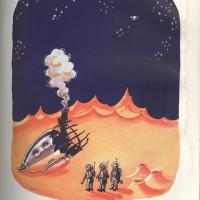 3 Stranded astronauts on an alien planet, it also shows a space ship crashed on a planet. The picture also shows an astronaut saying "ah well, thank goodness we still have our sense of humor. This image is also about the astronauts discovering a new…