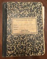 This still image capture a worn-down cookbook opened to a banana bread recipe. The recipe consists of 2lb flour, 20 oz sugar, 2 ½ teaspoon of baking powder, 1 teaspoon of baking soda, 1 teaspoon of salt, 6 oz of chopped walnuts, 20 oz of eggs, 2 lb. of ripe banana pulp pureed, and 8 oz. of oil, or melted shortening, or butter.