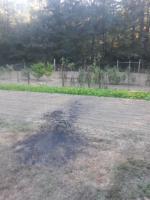 This still image shows JW Smith's garden up close. There is a green border around a variety of plant life. Some plants included are peppers, potatoes, and green beans. In the background, behind the trees, the sun is setting.