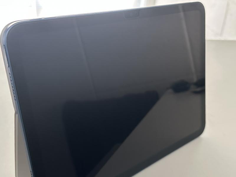 A modern Apple iPad with a full-screen display with touch screen and thin bezels. The photos show the device both powered on and powered off. The iPad color is blue. The iPad A16, released in 2024, brought faster performance and better efficiency to the iPad Air, making it a strong and affordable mid-range tablet