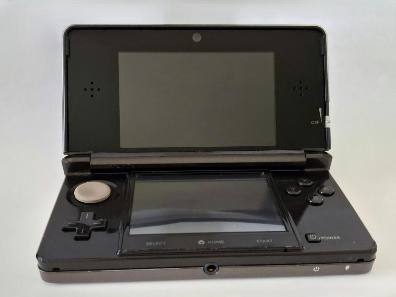A Nintendo 3DS video game console composed of dual LCD screens and an assortment of membrane switches as well as a thumbstick to control various games. The console featured a headphone jack, various sliders that would control volume and 3D effects, along with a switch that gave access to local Wi-Fi and the Internet. Additionally it included a game cartridge slot on its back that was backwards compatible with previous DS games. Furthermore, the bottom LCD screen also acted as a touchpad and the console itself could utilize its camera and microphone to use Augmented Reality in many of its games. Since its initial conception, it has become a staple of the mobile gaming industry and a direct inspiration for many more Nintendo products.