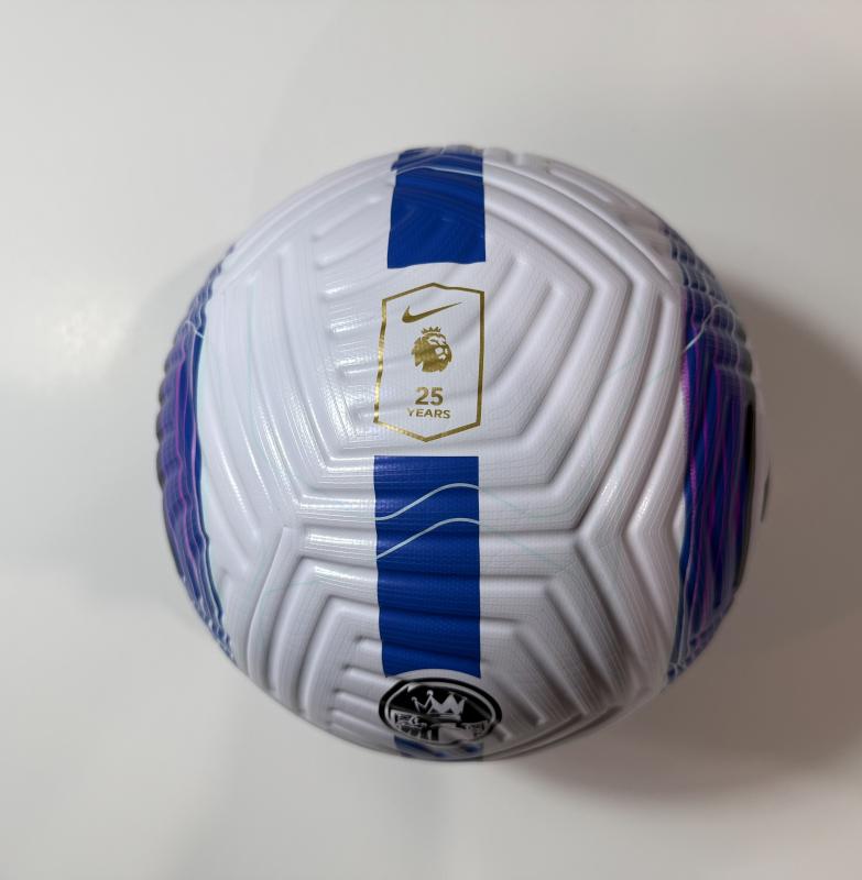 Nike Flight ball, with its 12-panel construction and debossed chevron arrows, offers “30% truer flight” than average balls, according to Nike. It’s the official match ball of the 2024-25 Premier League season, marking the end of an era as the final Premier League ball produced by Nike. The design pays homage to the acclaimed Nike Total 90 footballs used in the 2004/05 and 2005/06 Premier League seasons. The final Nike Premier League Nike Flight football debuted on February 19th, 2025, and will be used until the final match day on May 25th, 2025.