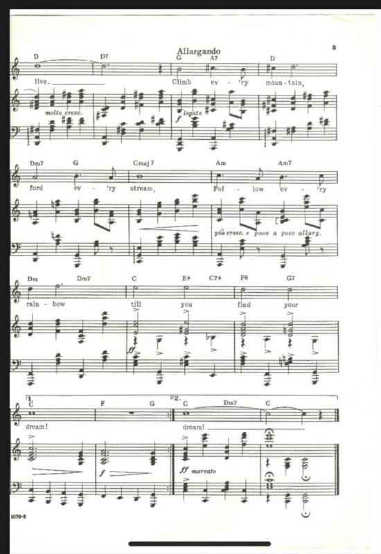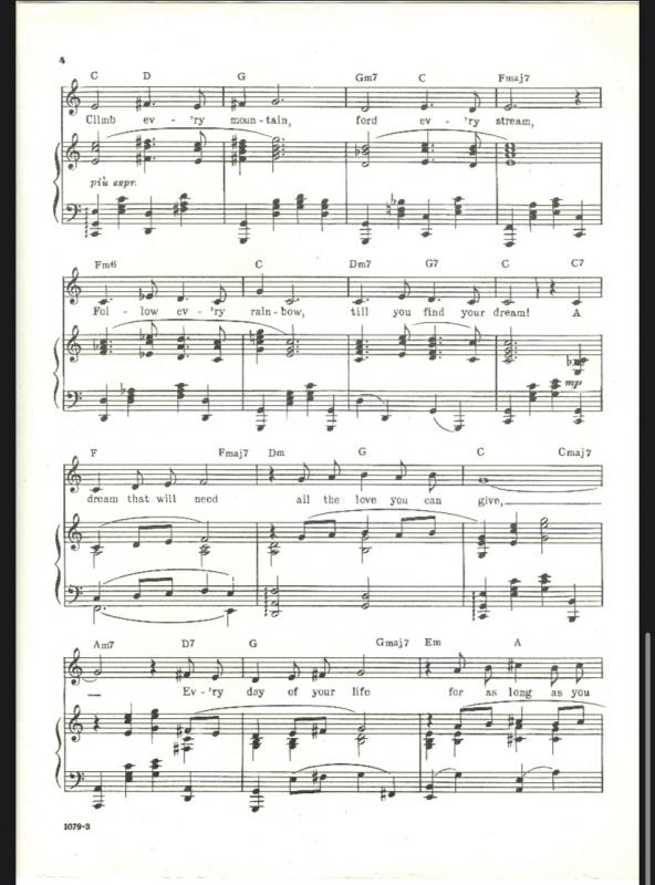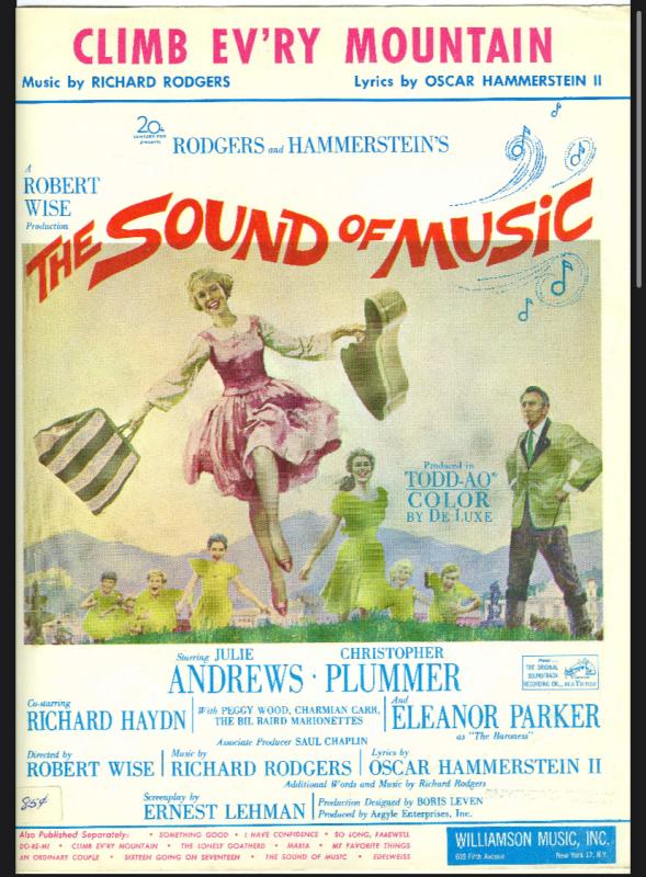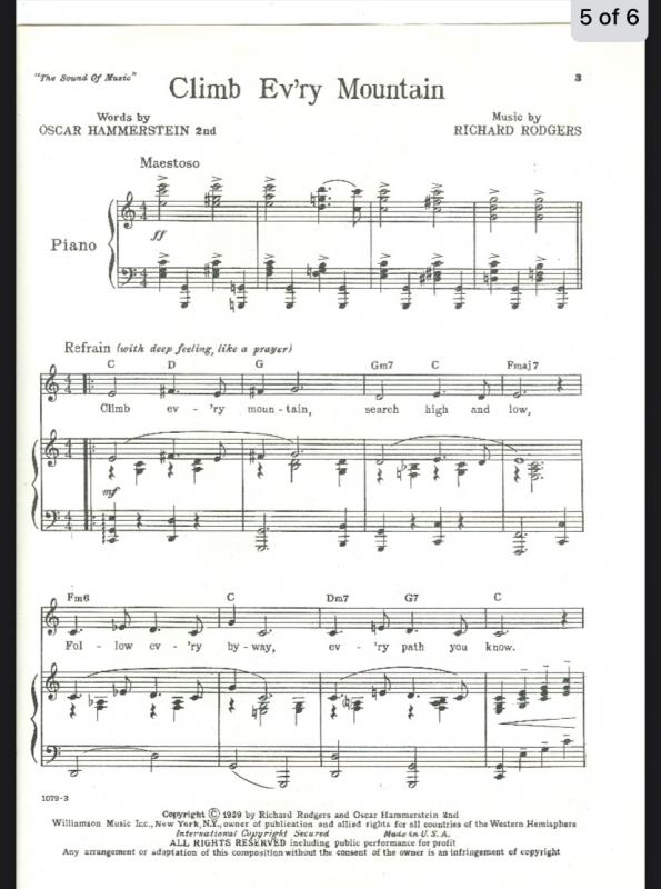 This is the score for the song “Climb Ev’ry Mountain,” from the film The Sound of Music (1965), written for voice and piano accompaniment.